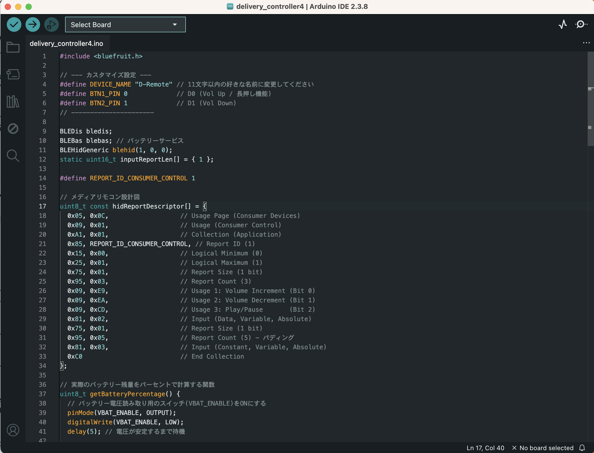 #define DEVICE_NAME "D-Remote" // 11文字以内の好きな名前に変更してください