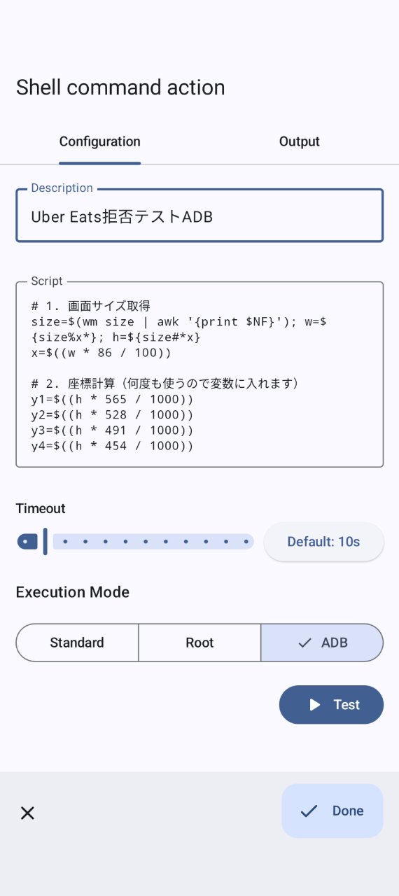 ※ここでは例として、Uber Eatsの「拒否」アクションを想定して進めます。他の用途の場合は「6-5. カスタマイズ」を参考に変更してください。